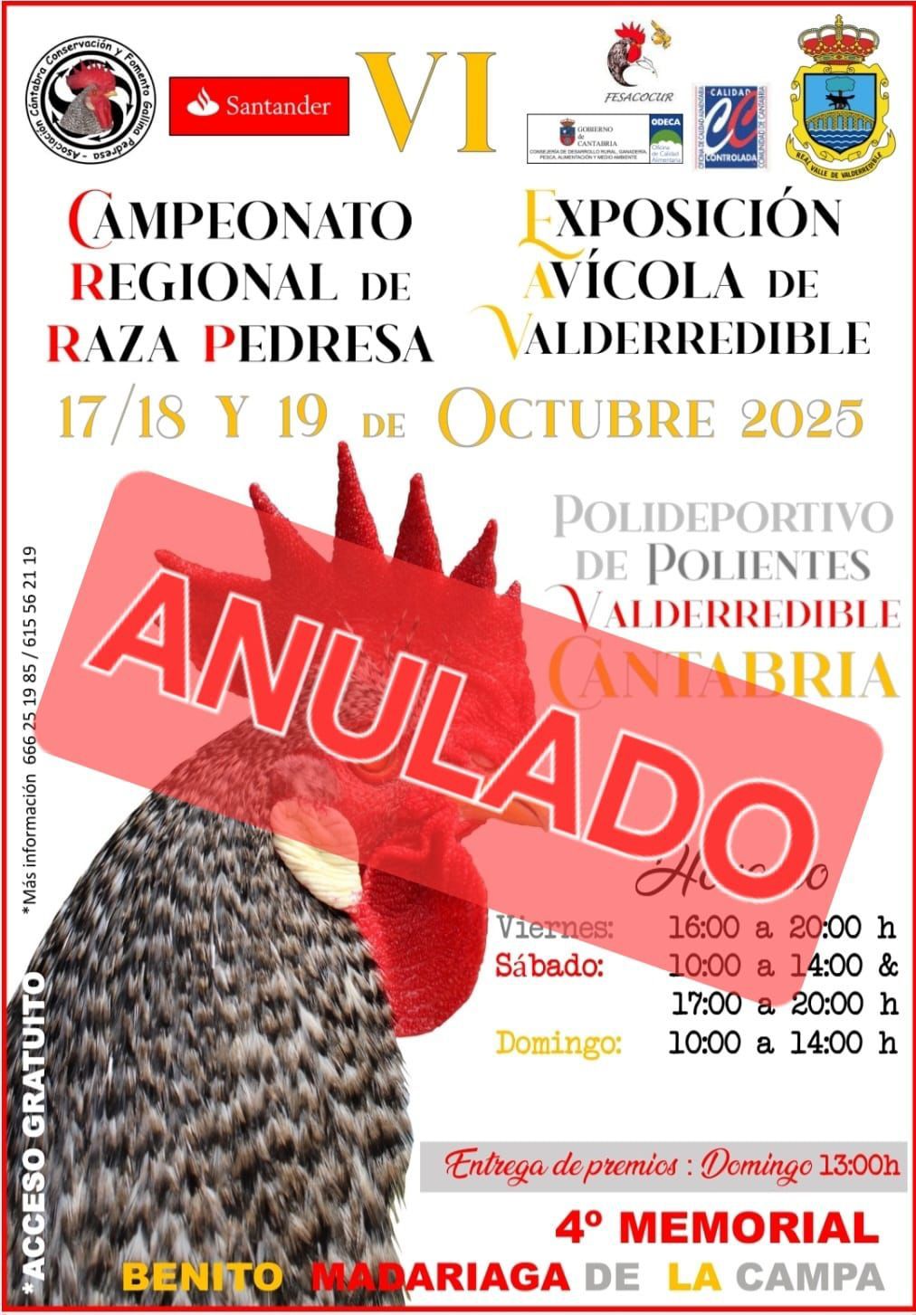 ![]() VI EXPOSICIÓN AVÍCOLA DE VALDERREDIBLE CAMPEONATO REGIONAL DE RAZA PEDRESA Reglamento aquí |